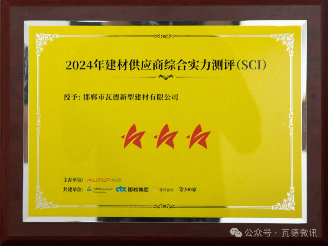 2024年4月8日,“5光同行 聚星閃爍”采筑聯(lián)合者大會(huì)在重慶順利召開(kāi),現(xiàn)場(chǎng)重磅發(fā)布2024年供應(yīng)商綜合指數(shù)SCI測(cè)評(píng)結(jié)果,獲全場(chǎng)數(shù)百位政府單位、采購(gòu)商、供應(yīng)商、行業(yè)協(xié)會(huì)、領(lǐng)域?qū)<业赛c(diǎn)贊認(rèn)可。 瓦德新材在本次SCI綜合測(cè)評(píng)中獲評(píng)“三星供應(yīng)商”。本次SCI測(cè)評(píng)共有2600余家參評(píng)單位,其中僅197家