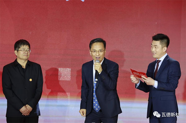 董事長謝富強首先講話,深情感謝各方賓朋。他簡要回顧30年風(fēng)雨歷程。一個十幾人的小作坊,在艱苦條件下,依靠團結(jié)奮斗的精神,誠信經(jīng)營的理念,不斷創(chuàng)新的勇氣,由小到大,由弱到強,由地面到門窗再到屋面,無論市場如何變遷,始終堅持不懈地打造自已品牌的堅強信念。將一支半手工作業(yè)的生產(chǎn)線打造成如今高端智能國際化的生產(chǎn)力量。實現(xiàn)了“瓦冠神州,德行天下”原初的奮斗目標(biāo),并將它確立為瓦德人躬身踐行的核心價值和企業(yè)永遠的座右銘。